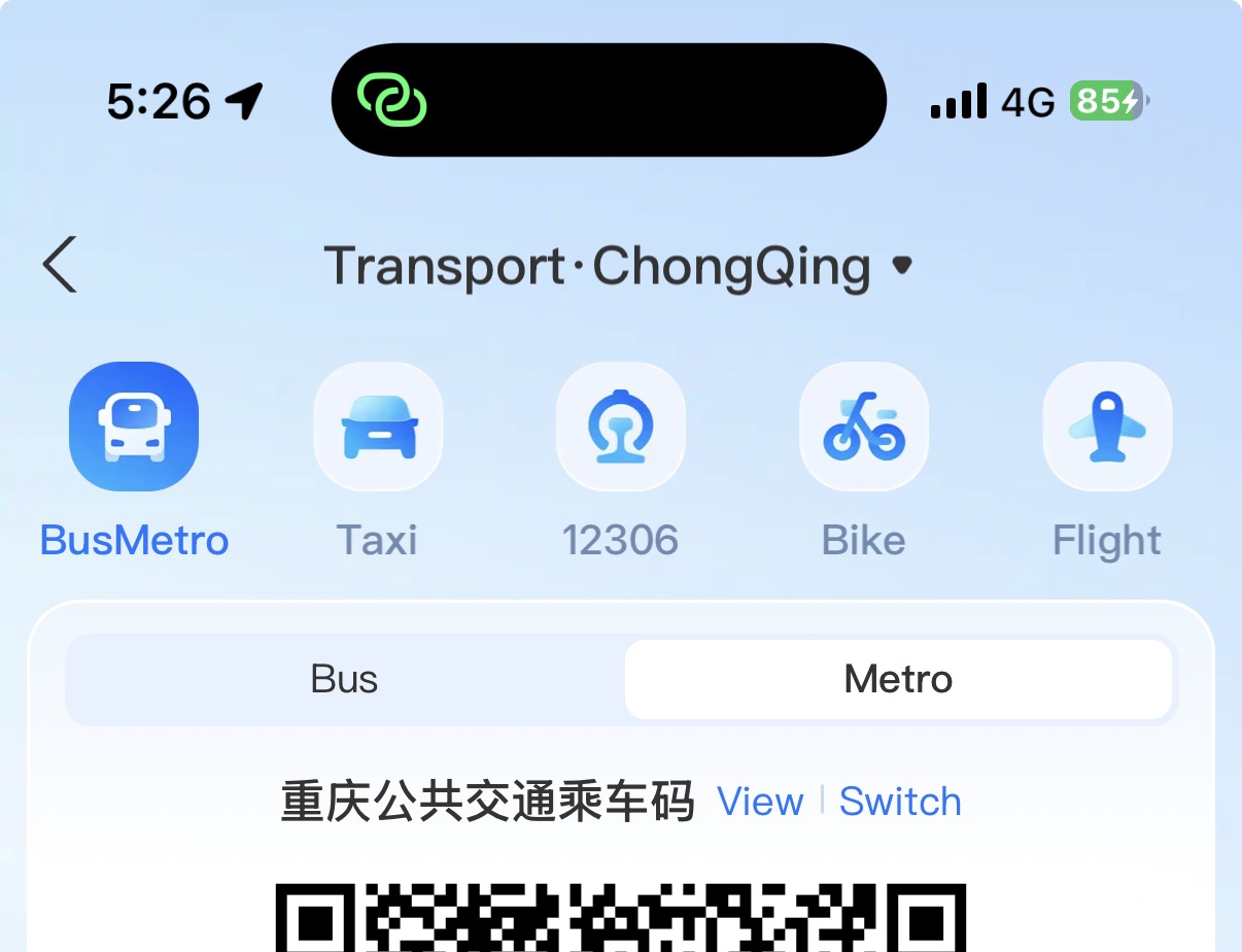 The transit QR code in Alipay, scan at metro gate
