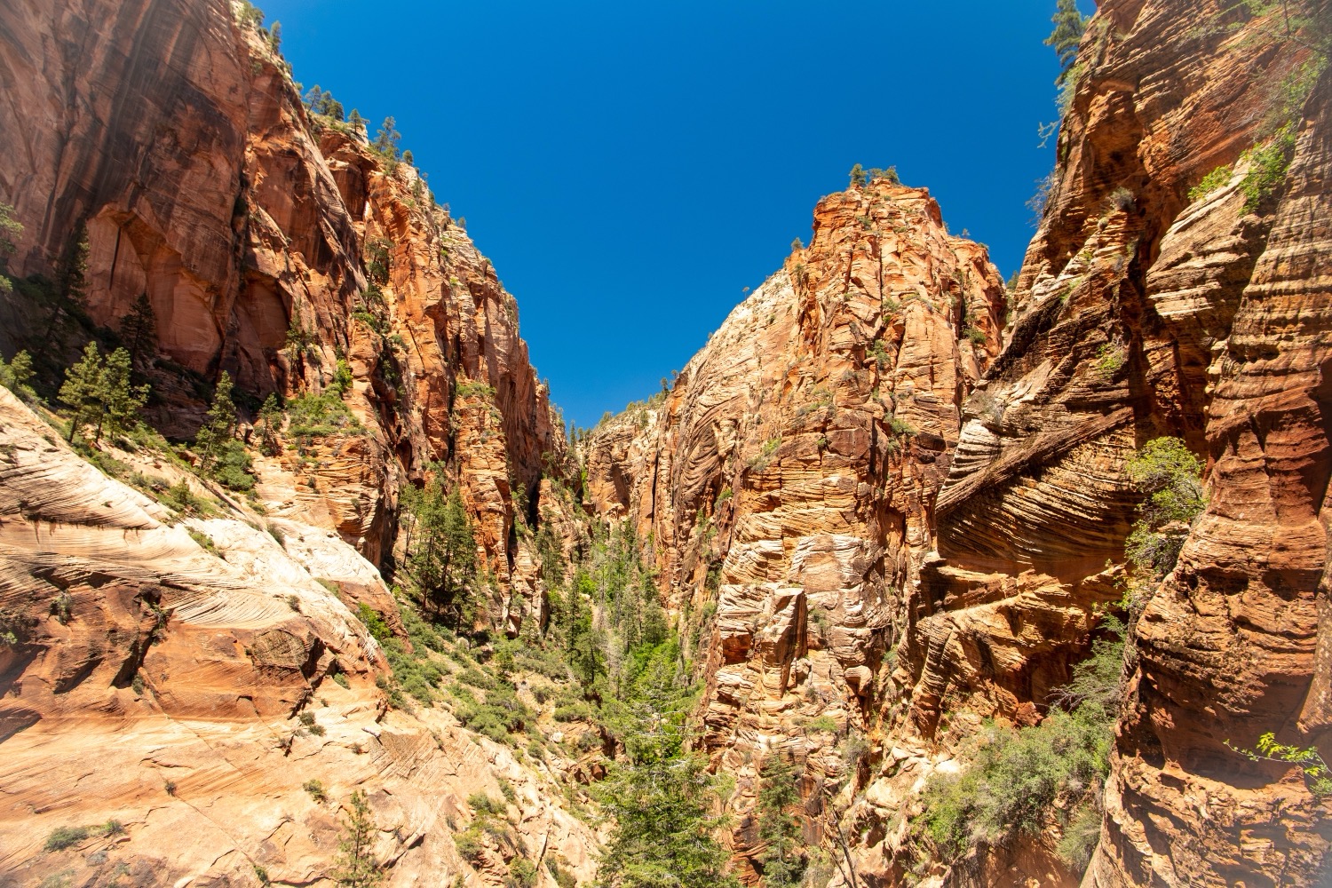 This steep climb up the canyon wall delivers one of Zion's most iconic views. We made the mistake of hiking at noon with zero shelter from the scorching sun. Learn from us and go early morning or mid-afternoon. The first set of switchbacks is brutally steep but once you're up there is some shade offered by the steep canyon rock walls which rise on both sides.