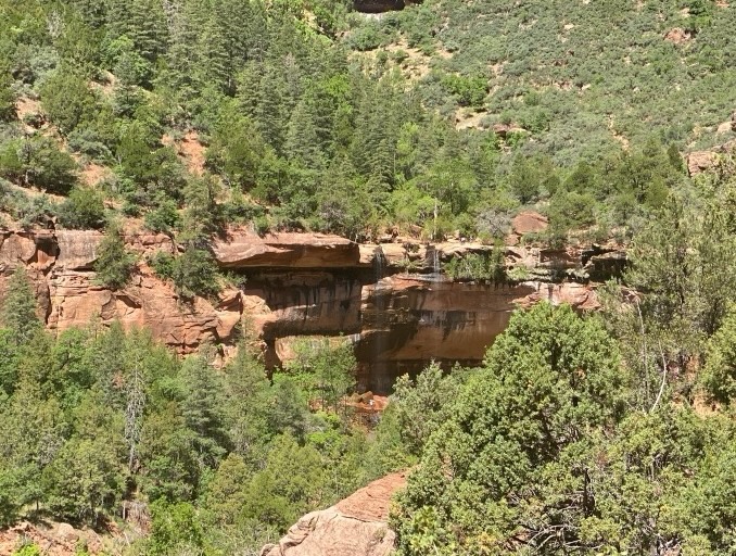 This 10-minute steep walk from the bus stop is absolutely worth it. While other "weeping" rock formations exist in the park, none match this one's flow. Standing behind the falling water with blue skies overhead, seeing rainbows in the desert spray—it's utterly surreal.